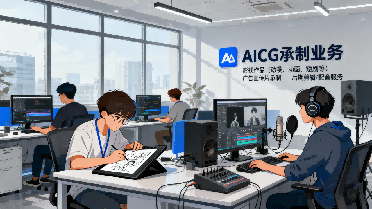 包括影视作品(动漫、动画、短剧等)及广告宣传片承制业务,后期剪辑/配音服务等一站式承制服务。